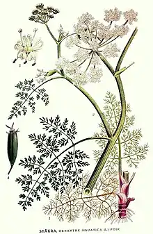 - ↑ Swiatek, Ł. (2022). "Phytochemical profile and biological activities of the extracts from two Oenanthe species (O. aquatica and O. silaifolia)". Pharmaceuticals. 15 (1): 50. doi:10.3390/ph15010050. PMC 8779323. PMID 35056107.