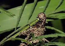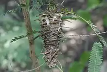 Oiketicus abbotii larva emerging from case