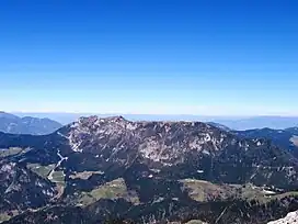Mount Olševa (pronounced [ˈoːu̯ʃɛʋa]; German Olschewa) is a ridge mountain in the eastern part of the Karawanks near the border with Austria. The mountain separates Carinthia from Styria. Its highest point, Govca, is 1,929 meters (6,329 ft) high. Other peaks along the 5-kilometer (3.1 mi) ridge are Obel kamen on the western side, and Smooth Peak (Gladki vrh) and Pretty Peak (Lepi vrh) on the eastern part. About 200 meters (660 ft) below Obel kamen lies Potok Cave (Slovene: Potočka zijalka), an archaeological site from the Stone Age. To the southwest of the mountain, at an altitude of 1,115 m (3,658 ft), there is a chalybeate (iron-rich) spring.[2][3]