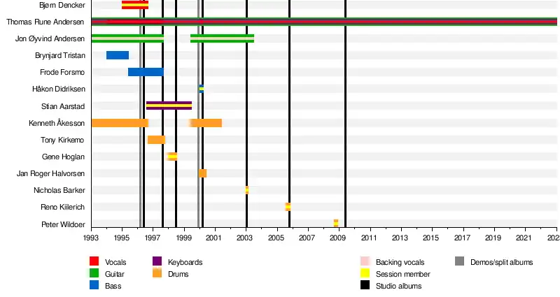 - Jon Øyvind "Jardar" Andersen – guitars, backing vocals (1993–1997, 1999–2003)