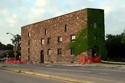 The Old Stone Warehouse in Rochester, New York is an historic warehouse building. It was built in 1822 and is a four-story, trapezoidal building with six-story addition built of Medina sandstone. It was built by Myron Holley and is located on the Erie Canal. Throughout the 19th century it was used for multiple purposes: as a foundry,[2] a storage warehouse, a tile pottery production facility, and a brewery.[3]