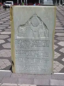 In 1958–1965 the new Opernhaus Dortmund was built on the site where the synagogue once stood. Since 1998 the forecourt is officially known as Platz der Alten Synagoge ("Place of the Old Synagogue") and a memorial stone as well as a memorial plaque was erected.