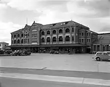 Old Townsville railway station, formerly the Great Northern Railway Station, is a three-storey red brick structure on Flinders Street in Townsville CBD, Queensland, Australia. The original terminus for the Great Northern Railway, the station became important in the economic growth of Townsville during the early 20th century. The building is featured in a number of famous photos taken during victory celebrations following World War II. A new station to service Townsville was built in the early 21st century and the platform is used for displays of historical photographs and articles. The building still houses Queensland Rail administrative offices.[1]