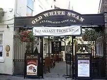 The Old White Swan is a pub in the city centre of York, in England. The core of the building is timber-framed and was constructed in the early-17th century. It lay at the back of a coaching yard on the north-western side of Goodramgate, but with another entrance on Low Petergate. Underneath a glass panel in the floor is part of a Roman column, although this is not its original location.[1]