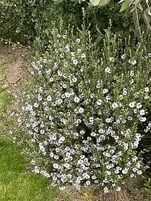Olearia minor, is a small flowering shrub in the family Asteraceae. It has alternate leaves and white to pale mauve daisy-like flowers from winter to December. It grows in Western Australia, South Australia, New South Wales, and Victoria.