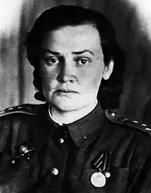 Olga Nikolaevna Yamshchikova (Russian: Ольга Николаевна Ямщикова; 1914–1982) was Soviet fighter pilot squadron commander during World War II who became a test pilot after the war; she has been credited with as many as three shootdowns in World War II.[1][2] During her postwar aviation career she became the first woman to fly the MiG-19.[3]