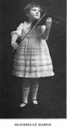 Olivebelle Hamon as a child violinist, from a 1920 publication.