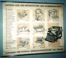 A chart depicting the development of the typewriter, produced by Olympia-Büromaschinenwerke