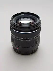 The Olympus Zuiko Digital ED 14-42mm 1:3.5-5.6 is an interchangeable kit zoom lens announced by Olympus Corporation on September 14, 2006.[1][2][3][4]
