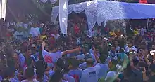 Omed-omedan, also known as "The Kissing Ritual", is a ceremony that is held by the young people of Banjar Kaja Sesetan, Denpasar, Bali.[1] Omed-omedan is held on the day of ngembak geni (a day after Nyepi) to celebrate the Saka new year.[1] The name is derived from the Balinese language and means pull-pull.[2]