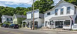 The Omena Historic District consists of a set of buildings in the village of Omena, extending along M-22 on Omena Bay. The district includes houses, outbuildings, commercial buildings, and the Grove Hill New Mission Church. The district also includes the cemetery behind the church and two sets of historically significant dock pilings in the bay. The buildings date primarily between 1858 and 1935 and are typically one or two stories in height. The houses are typically Upright and Wing or Gablefront styles, and there are two False front commercial stores. Various buildings exhibit Greek Revival, Italianate, or Queen Anne details.[2]