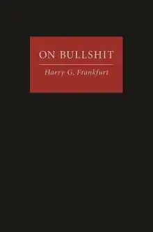 On Bullshit is a 2005 book (originally a 1986 essay) by American philosopher Harry G. Frankfurt which presents a theory of bullshit that defines the concept and analyzes the applications of bullshit in the context of communication. Frankfurt determines that bullshit is speech intended to persuade without regard for truth. The liar cares about the truth and attempts to hide it; the bullshitter doesn't care if what they say is true or false.[1] Frankfurt's philosophical analysis of bullshit has been analyzed, criticized and adopted by academics since its publication.[2]