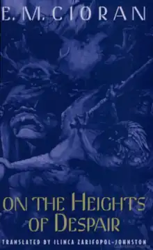 On the Heights of Despair (Romanian: Pe culmile disperării) is a Romanian philosophical work written by Emil Cioran, published in 1934 as his first book. It consists of several brief reflections on negative themes which later permeated Cioran's work, such as death, insomnia and insanity.