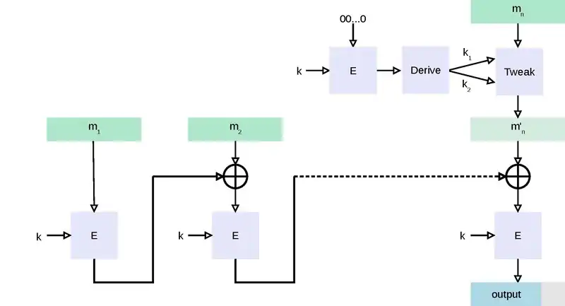 One-key MAC (OMAC) is a message authentication code constructed from a block cipher much like the CBC-MAC algorithm.