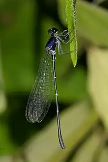 Onychargia atrocyana[2][1] a species damselfly in the family Platycnemididae. This species is commonly known as the marsh dancer or black marsh dart.[3][4] It is found in Asia: Bangladesh, China, Hong Kong, Indonesia, India, Sri Lanka, Myanmar, Malaysia, Philippines, Peninsular Malaysia, Singapore, Thailand, Viet Nam.[1][5]
