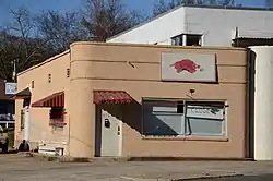 Opal's Steak House is a historic building located at 871 Park Avenue in Hot Springs, Arkansas. Opal's Steak House was constructed between 1946 and 1948 to serve tourists visiting the thermal springs in Hot Springs; its location on Park Avenue served travelers on nearby U.S. Route 70, the main highway between Little Rock and Hot Springs. The building was constructed in the Art Moderne style, which is visible in its curved stucco facade and horizontal features. In 1952, the restaurant changed its name to the Golden Drumstick Restaurant; the building has since served as a clothing store, a furniture store, and a laundromat.[2] The building was added to the National Register of Historic Places on February 11, 2004.[1]