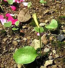 Ophioglossum reticulatum, the netted adder's-tongue, is a species of fern in the family Ophioglossaceae.[3] It has a pantropical/pansubtropical distribution; Latin America, the Caribbean, Sub-Saharan Africa, Madagascar, Yemen, the Indian Subcontinent, Southeast Asia, warmer parts of China, Malesia, Korea, Japan, and many tropical islands.[2] A hexaploid, it has the highest number of chromosomes of any plant, 720.[4] Its leaves—or leaf, individuals only grow one per year—are edible, and are regularly consumed by people in Africa and Asia.[5][6]