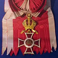 An Imperial Decree of 1 February 1901 ordered that in future, the senior grade would be split into two separate awards. From then onwards, there were four ranks: Grand Cross, First Class, Commander, Knight.