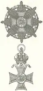 | Grand Cross Star with war decoration | Alternative Medal | Grand Cross Star with war decoration and swords | Alternative Medal | |