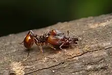 - ↑ Smith, F. 1854: Monograph of the genus Cryptocerus, belonging to the group Cryptoceridae - family Myrmicidae - division Hymenoptera Heterogyna. Transactions of the Entomological Society of London (n.s.), 2(7): 213-228. doi:10.1111/j.1365-2311.1854.tb02221.x BHL [Date of publication: Jan. 1854]