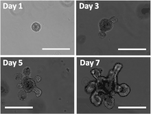 - ↑ Li X, Nadauld L, Ootani A, Corney DC, Pai RK, Gevaert O, et al. (July 2014). "Oncogenic transformation of diverse gastrointestinal tissues in primary organoid culture". Nature Medicine. 20 (7): 769–77. doi:10.1038/nm.3585. PMC 4087144. PMID 24859528.