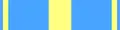 The medal hangs from a ribbon through a ring passing through the medal's suspension loop. The ring is adorned by a 24mm in diameter bronze laurel wreath and half crescent. The ribbon is 37mm wide and is light blue with a yellow central 7mm wide and 2mm wide stripes 2mm from the edges.[1]