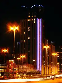 The Orion Building is a 90-metre (295 ft) tall high rise residential building on Navigation Street, Birmingham 5, England. Construction of the tower began in 2004 with demolition of the previous building on the site, and was completed in 2007. As part of the development, the original façades of some of the previous buildings have been retained and incorporated into the lowrise sections of the complex. The complex consists of a 28-storey tower with five basement floors. It includes the city's first penthouse which was sold for £1.65 million.[2] The fourth and final phase of the building, being marketed as 'Sirius', is nearing completion.
