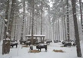Bison feeding during the winter at Orlovskoye Polesye