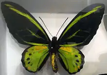 Ornithoptera akakeae is the name given to a birdwing butterfly that is a natural hybrid between Ornithoptera rothschildi and Ornithoptera priamus poseidon. Despite the fact that hybrids do not warrant a binomial name, the name Ornithoptera akakeae persists from the original description of the butterfly as a species.