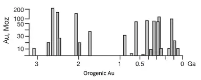 - 1 2 3 R. J Goldfarb, D. I Groves, S Gardoll (2001-04-01), "Orogenic gold and geologic time: a global synthesis", Ore Geology Reviews (in German), vol. 18, no. 1, pp. 1–75, Bibcode:2001OGRv...18....1G, doi:10.1016/S0169-1368(01)00016-6, ISSN 0169-1368, retrieved 2021-02-11