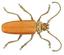 Orthomegas cinnamomeus is a species of beetle in the genus Orthomegas of the family Cerambycidae. It was described by Carl Linnaeus in his landmark 1758 10th edition of Systema Naturae.[1] It is found in Hispaniola, Trinidad, Colombia, Venezuela, the Guianas, Brazil, Ecuador, Peru and Bolivia.