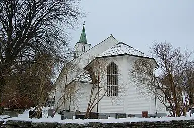 Os Church (Norwegian: Os kyrkje) is a parish church of the Church of Norway in Bjørnafjorden Municipality in Vestland county, Norway. It is located in the village of Osøyro. It is one of the two churches for the Os parish which is part of the Fana prosti (deanery) in the Diocese of Bjørgvin. The white, wooden church was built in a long church design in 1870 using plans drawn up by the architect Ole Vangberg. The church seats about 600 people.[1][2]