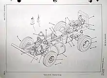 The MB-5 featured 4-wheel drive, with no-slip differentials on the rear axle. The Marine Corps variants of the truck featured no-slip differentials on the front axle assembly as well. The full floating axles sat on leaf spring suspension, mounted to both the front and rear of the frame.[3] While unloaded, the truck's suspension was quite rigid; and there was even a noticeable tilt to the left side which compensated for the extra weight when the water tank was full.