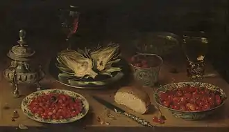 - ↑ Osias Beert I (Antwerp c. 1570–1624), A still life of dishes of fruit and drinking glasses arranged on a wooden tabletop at Johnny van Haeften