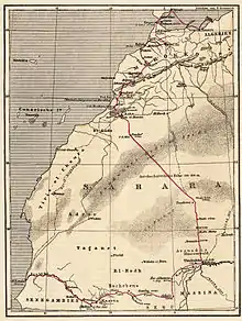 In 1879–1880, he led the first trans-Sahara expedition from Morocco to Senegal. The primary purpose of the expedition was to perform geological studies of the region, investigating the possibilities of iron ore deposits. In 1880, with his Spaniard companion Cristobal Benítez, he became only the fourth European to visit the fabled city of Timbuktu. The others being, Alexander Gordon Laing (1826), René Caillié (1828) and Heinrich Barth (1853).