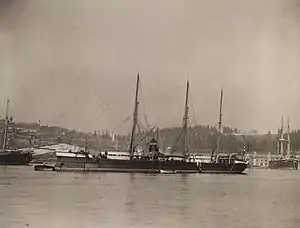 Upon completion, Hifz-ur Rahman and the other ironclads then being built in Britain and France were sent to Crete to assist in the aftermath of the Cretan Revolt of 1866–1869. During this period, the Ottoman fleet, under Hobart Pasha, remained largely inactive, with training confined to reading translated British instruction manuals.[5] Hifz-ur Rahman was assigned to the II Squadron of the Asiatic Fleet, along with her sister ship Lütf-ü Celil and the ironclads Avnillah and Muin-i Zafer.[6] Early in the ship's career, the Ottoman ironclad fleet was activated every summer for short cruises from the Golden Horn to the Bosporus to ensure their propulsion systems were in operable condition.[7] In 1875, the ship received a single 120 mm (4.7 in) gun manufactured by Krupp.[8]