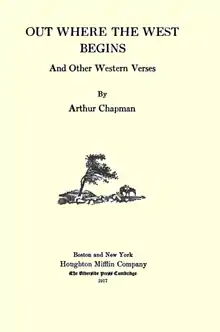 • Chapman, Arthur. Out Where the West Begins: And Other Western Verses. New York: Houghton Mifflin Company (1917).