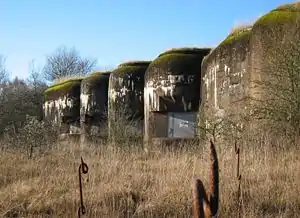 Rochonvillers did not see significant action in the Battle of France in 1940, nor in the Lorraine Campaign of 1944. The Germans in 1940 largely bypassed the area, advancing along the valley of the Meuse and Saar rivers, threatening the rear of the Thionville sector. An order to fortress troops by sector commander Colonel Jean-Patrice O'Sullivan to prepare for withdrawal on 17 June was reversed by O'Sullivan.[29] On 21 June a 75 mm gun in Block 5 exploded, killing one gunner and seriously wounding another. The gun position has never been repaired.[30] Rochonvillers was bombarded by heavy artillery on 22 June, with a projectile penetrating and exploding in Block 5.[31] On June 30, 1940, the troops of the 169th RIF were ordered to evacuate their positions by the French command, seven days after the 22 June 1940 armistice.[32]