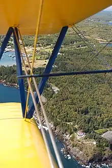 Owls Head Light and part of harbor viewed from the Owls Head Transportation Museum's Stearman Biplane, taken on 2003/10/5