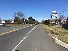 In 1946, the northern terminus of PA 413 was moved from Sellersville to the US 611 intersection in Pipersville. The former route between Sellersville and Pipersville became an extended PA 152 between Sellersville and Perkasie, unnumbered South Perkasie Road and Blooming Glen Road between Perkasie and Blooming Glen, and a rerouted PA 113 between Kulps Corner and US 611. In addition, the southern terminus was extended from Buckingham to US 13 in Bristol. The route replaced the entirety of PA 101 between Bristol and Penndel and part of PA 113 between Penndel and Buckingham.[10] By 1950, PA 413 was realigned to bypass Bath Road and Durham Road on its current alignment between Bristol and Penndel. In addition, the route was extended south from US 13 to the Burlington–Bristol Bridge, replacing PA 713.[11] In 1977, PA 413 was rerouted to bypass Newtown to the west on the Newtown Bypass.[12] The former alignment of PA 413 in Newtown followed State Street, Washington Street, Sycamore Street, and Durham Road.[13] In 1991, PA 332 and PA 532 were also rerouted to bypass Newtown following an extension of the bypass.[13][14] Also, the northern terminus of PA 413 at PA 611 was moved to its current location at Deep Run Road instead of where Durham Road intersected PA 611.[13]