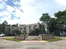 PUC campus is situated at the eastern side of Aizawl, and covers 138 acres of land.[21] As the only verdant forest reserve within the capital city of Mizoram, Chief Minister Lal Thanhawla once remarked it as the "lung of the city."[22] There are five academic buildings, one central library, seven staff quarters, health clinic, counseling centre, NSS/Students' Union Office, power generator room, ring well, basketball court, volleyball court, and seismological observatory. In addition to classrooms and departmental rooms, Academic Block 1 consists of Student's Recreation Centre and Internet Resource Centre. Academic Block 2 consists of a workshop/maintenance cell. The basement of Academic Block 3 is Language Lab. Science Building consists of IGNOU Centre 1923. Seminar Hall lies adjacent to Science Building and Life Science Building, and the basement is a cafeteria. Research and Instrumentation Centre, Zoological Museum, and Advanced Biotech Hub are at located within Life Science Building.[11]