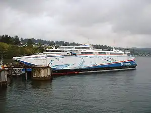 ![]() PacifiCat Explorer, the first of the class, docked at Departure Bay in Nanaimo | |