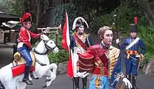 In 1933, at the second Festival of Arts, artist Lolita Perine had an idea for a living work of art. Persuading residents of Laguna Beach to dress in costume, she seated them behind an oversized frame, recreating well-known works of art.[4] The "Spirit of the Masters Pageant" was formally started the next year by the Festival's organizers and was put on again in 1934, but in those early days was an amateur operation of low quality.[5]