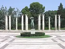 In 1930, once the exposition was over, it was proposed to locate the Barcelona Music Museum in the palace. The project did not prosper but the Board of Museums proposed the construction and placement of a bust in honor of the musician, composer and pianist Isaac Albéniz. The City Council gave its approval and from that moment the Royal Pavilion of Montjuic has been known as the Palacete or Palauet Albéniz. This bust was sculpted by the Enric Casanovas and Mateu Fernández Soto.