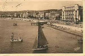 Palais de la Méditerranée was built by architects Charles and Marcel Dalmas,[1] in 1929 for the American millionaire Frank Jay Gould. According to Insight Guides, it "epitomised 1930s glamour with a casino, theatre, restaurant and cocktail bar".[2] It was originally a major centre for the arts in Nice,[3] and national and international art exhibitions were held there.[4][5]
