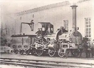The Palatine Nos. 26 to 63 were steam locomotives of the Palatine Railways (Pfalzbahn) and typical express train, tender locomotives of the Crampton type with wheel arrangement 2A. Both running axles were housed in the main frame, the driving axle was behind the vertical boiler. This enabled driving wheels with a diameter of 1,830 mm (6 ft 0 in) to be fitted without placing the boiler higher than was customary at the time. As a further feature, the locomotive number 28 Pfalz ("Palatinate") had weather protection for the engine driver and fireman, which was not common at the time.