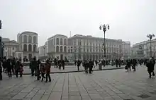 ![]() Two wings of Palazzo dell'Arengario as viewed from Piazza del Duomo, in the distance is the Monument to the Carabinieri at the Piazza Armando Diaz | |