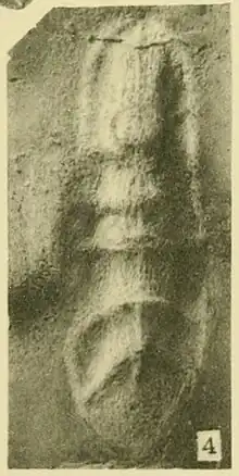 A trilobite belonging to the family Dorypygidae. It is the most common fossil in the Mt. Stephen fossil beds there, but rare in other Cambrian faunas. Its major characteristics are a prominent glabella with eye ridges, lack of pleural spines, a large spineless pygidium about as long as the thorax or cephalon.
