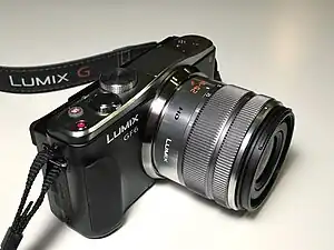 Panasonic Lumix DMC-GF6 is a Micro Four Thirds digital camera by Panasonic Lumix with a 16 megapixel resolution sensor. It is the successor to the GF5. The GF6 adds Wi-Fi with NFC, a 180 degree tilting screen and a mode dial with a customizable lever.[1] It also has an improved grip and better ISO performance when compared to its predecessor.[2][3] It comes bundled with the new Panasonic Lumix G Vario 14-42mm f/3.5–5.6 II Asph., Mega O.I.S., which boasts better build quality, a smaller design and improved sharpness.