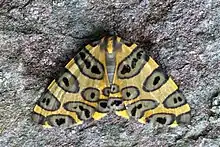 The wingspan of Pantherodes pardalaria can reach about 50 millimetres (2.0 in). These moths have yellow wings with leopard-like blue-grey blotches.